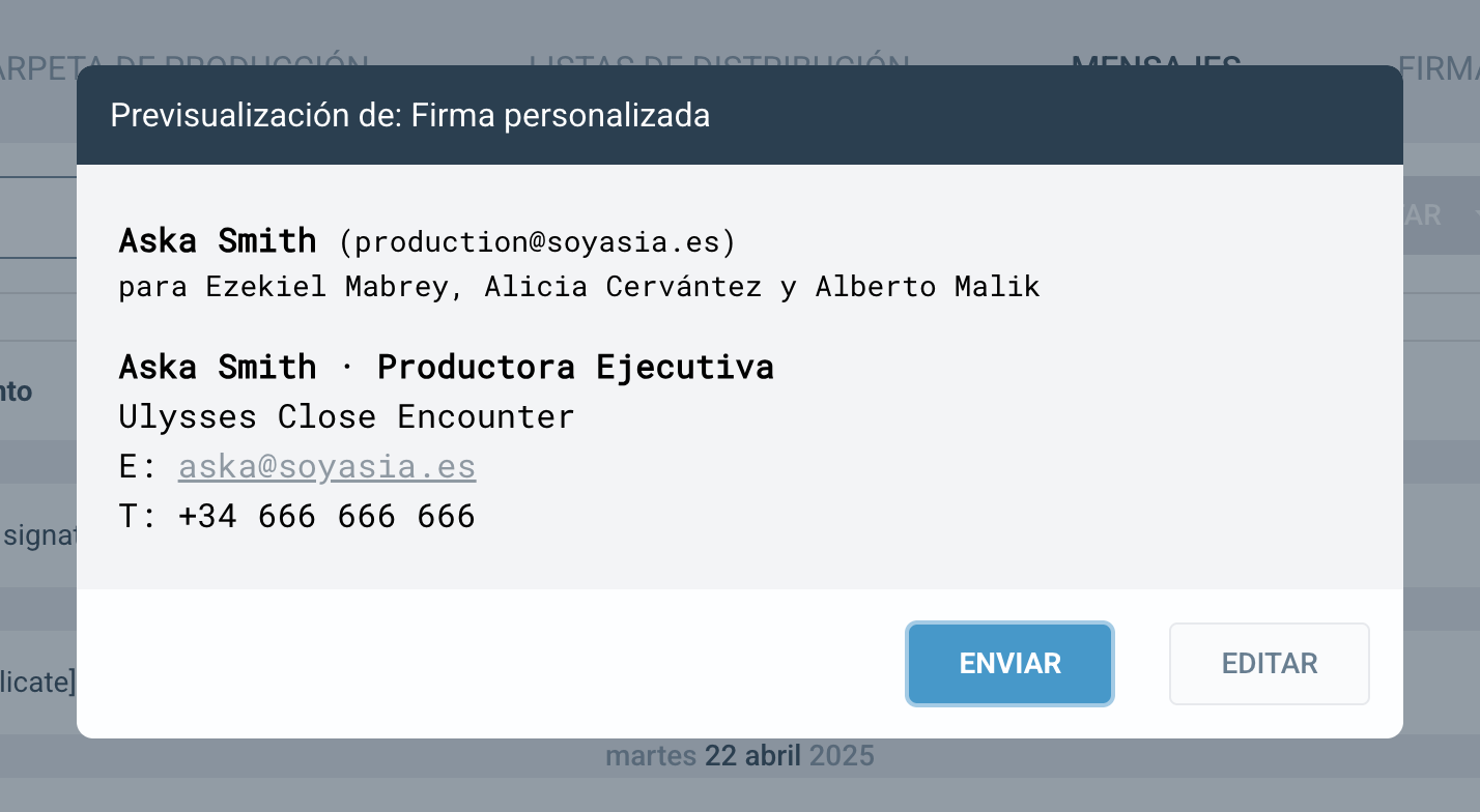 Si quieres personalizarla, entra en Ajustes ⚙️ >> Ajustes Personales >> Firma de correo, para editar o eliminar cualquiera de estos elementos.