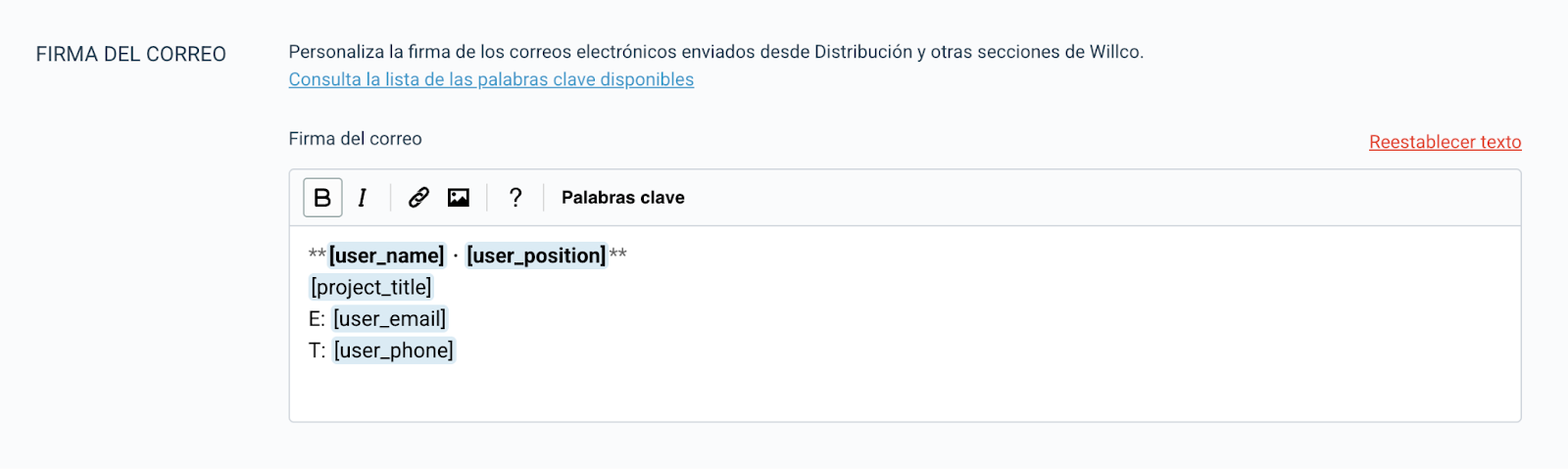 Puedes personalizar la firma que se incluye en todas las comunicaciones que haces mediante willco