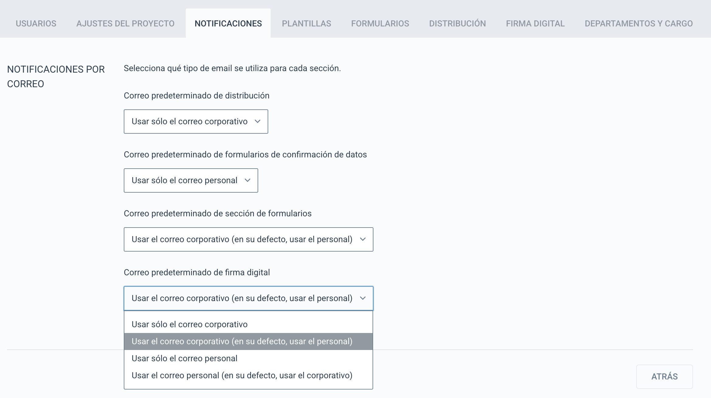 Willco te permite introducir 2 direcciones de correo: personal y corporativo en las fichas del equipo y reparto, para su uso en las siguientes utilidades:
