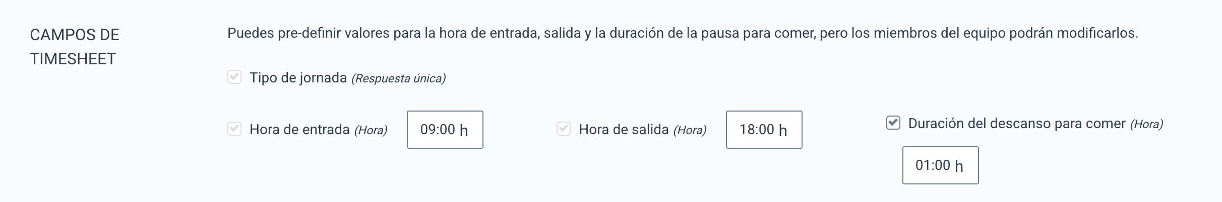 Al registrar la jornada los miembros del equipo podrán aceptar los valores predefinidos o modificarlos.